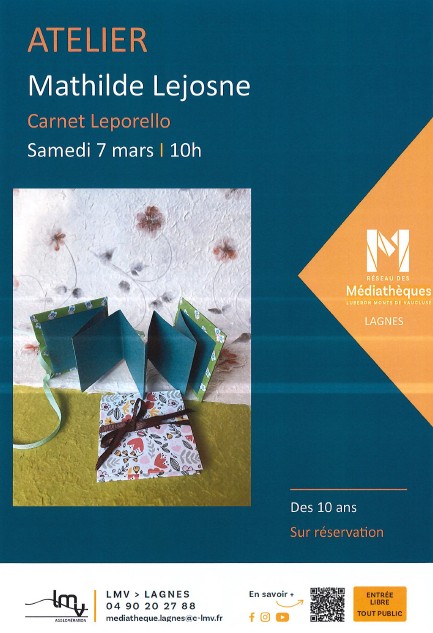 ATELIER : Matilde Lejosne. Atelier Matilde Lejosne : Carnet Leporello. Date 07 Mar 2026 Heure 10 h 00 min