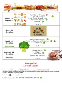 Menu de la Cantine du 10 au 14 Novembre 2025