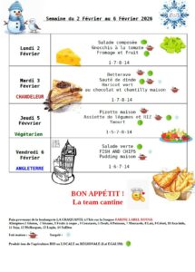 Menu de la cantine du 2 au 6 février 2026.