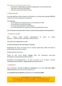 Les Francas de Vaucluse lance un recrutement pour accompagner, moi même, Renaud Peyrard, responsable des accueils Collectifs de mineurs un adjoint pédagogique et administratif. Le poste à pourvoir, débuterait dans l’idéal pour les vacances de Printemps 2026.